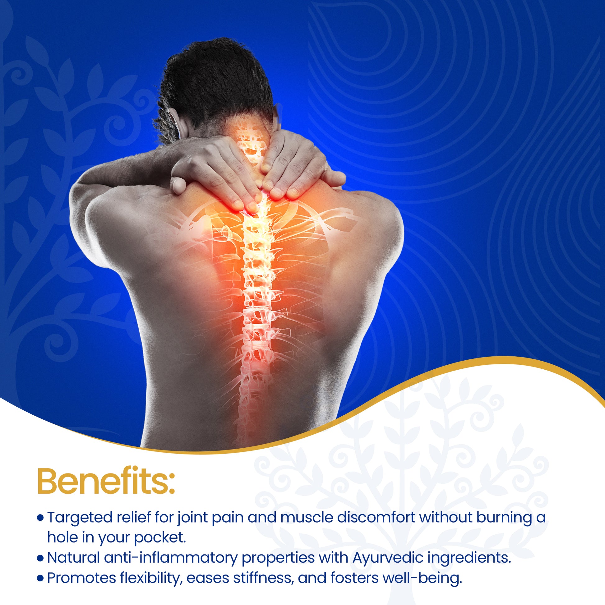 - Muscular and joint pains linked with spasm, sprains, bruises, inflammation, swelling, early arthritis, neck, shoulder, back, hip, knee, ankle and heal pains.