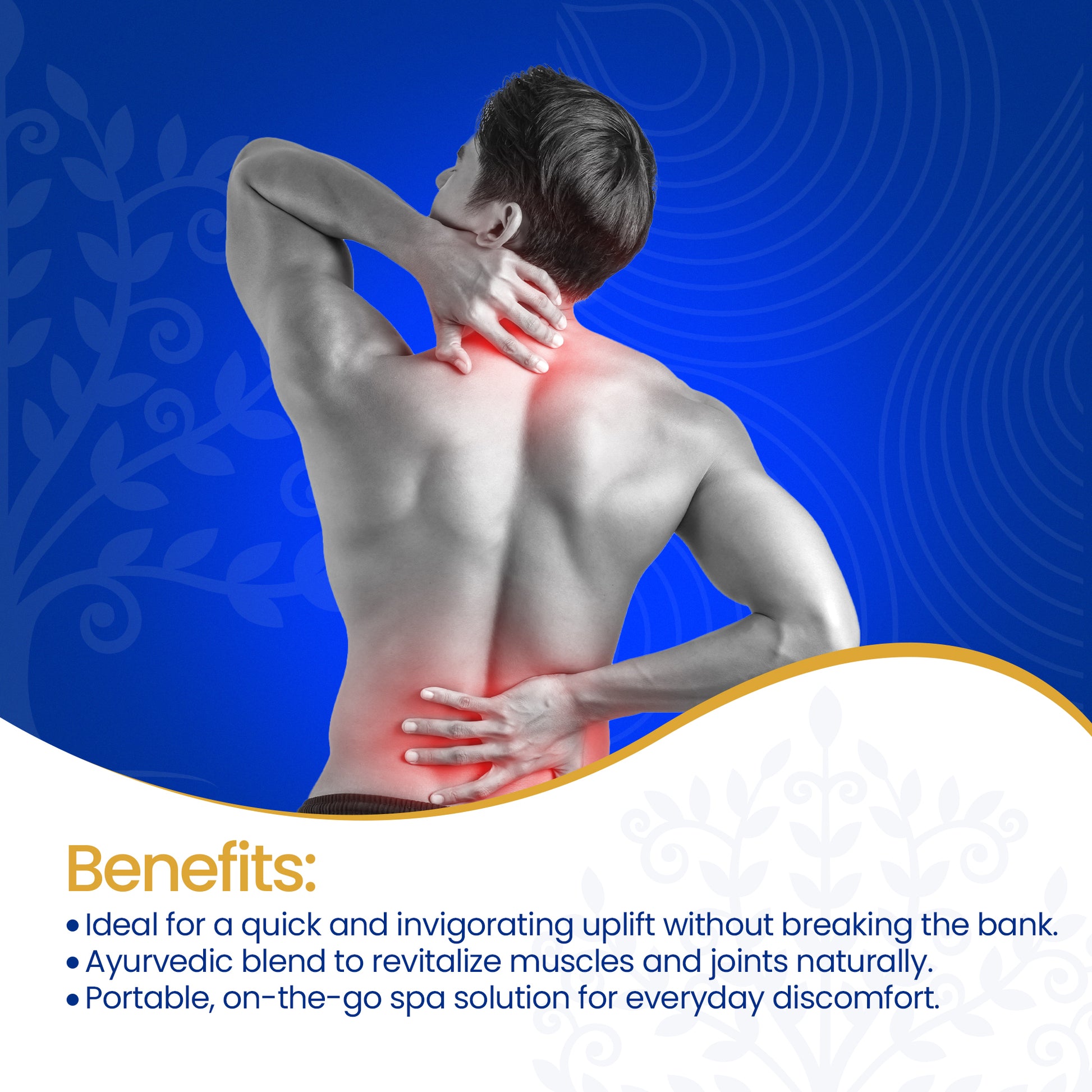 - An expert combination of carefully blended essential oils inspired from the elixirs of ancient Ayurveda sciences that helps in soothing tired or overworked muscles & joints.