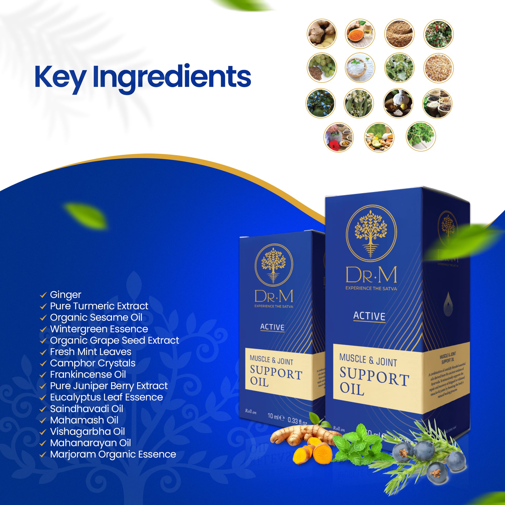 - An expert combination of carefully blended essential oils inspired from the elixirs of ancient Ayurvedic sciences that helps in soothing tired or overworked muscles & joints.